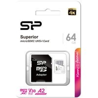 Карта памяти Silicon-Power Superior microSDXC SP064GBSTXDA2V20SP 64GB (с адаптером) Код: 333245