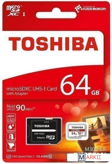 Markit » Карты памяти » Карта памяти Toshiba EXCERIA microSDXC 64GB + адаптер [THN-M302R0640EA]