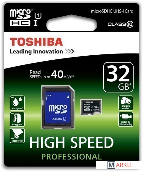 Markit » Карты памяти » Карта памяти Toshiba microSDHC UHS-I (Class 10) 32GB + адаптер [SD-C032UHS1(6A]