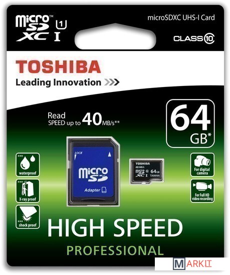 Markit » Карты памяти » Карта памяти Toshiba microSDXC UHS-I (Class 10) 64GB + адаптер [SD-C064UHS1(6A]