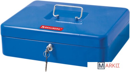 Ящик BRAUBERG предназначен для хранения и транспортировки денег, ценных вещей, документов, печатей, медикаментов. Используется дома и в офисе для ограничения доступа посторонних лиц. Отличное сочетание надёжности и вместительности.Съемный лоток из ударопрочного пластика с 9 отделениями: 4 для купюр и 5 для монет и украшений. Самая широкая ячейка — первая (78 мм). Она подходит для евро. Вторая ячейка — 75 мм. В нее входят белорусские купюры (72 мм). Третья ячейка — 68 мм. В нее войдут доллары США (66,3 мм). Российский рубль войдет в первые три ячейки. Четвёртая ячейка самая узкая — 63 мм. Подходит для карточек, ключей, печати. Под лотком есть пространство, где можно хранить документы и бумаги. Размер 30х24 см.Изготовлен из стали толщиной 0,8 мм. Надежный корпус с удобной ручкой выполнен в синем цвете. С ключевым замком, в комплекте 2 ключа. Размер — 90х240х300 мм.