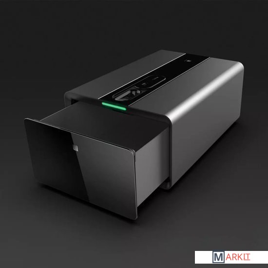 QIN Safe Box — сейф для хранения личных вещей, выполненный в форме выдвижного ящика. Надежную защиту от взлома обеспечивает биометрическая технология Finger Vein - распознавание рисунка вен пальцев. Также сейф можно синхронизировать со смартфоном через приложение. Если кто-то будет пытаться открыть сейф, владелец получит уведомление.