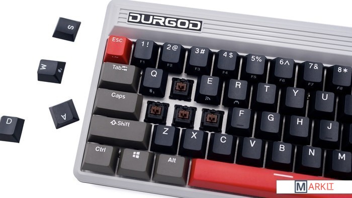 КЛАВИАТУРА БЕЗ КИРИЛЛИЦЫТип: линейныйСила нажатия: 45 грамм (легкие)Длина пути: 4 мм (2 мм до срабатывания)Помимо подключения через стандартный кабель USB клавиатура может работать в одном из двух беспроводных режимов — Bluetooth 5.0 или беспроводном соединении 2.4G, обладающем меньшей, по сравнению с Bluetooth, задержкой. Переключение между режимами осуществляется с помощью специального слайдера в верхней правой части. Благодаря беспроводному подключению вы также можете подключить клавиатуру к устройствам на iOS или Android.Два кабеля в комплекте - Вы можете использовать как USB Type-C, так и старый добрый USB Type-A.Мультимедиа и дополнительные FN функции - Клавиатура поддерживает сочетания клавиш для регулировки громкости и управления музыкой. Также имеется возможность отключить кнопку Windows.Durgod Zeus Engine позволяет создавать макросы. Можно создать свои мультимедиа, функциональные макросы и многое другое. ПО не поддерживается на Mac OS.Прочные регулируемые ножки позволят немного приподнять клавиатуру и изменить её угол наклона для более комфортной печати, а их прорезиненное дно не даст клавиатуре сдвинуться с места.Функция Full N-key Rollover по USB (NKRO) - Позволяет нажимать одновременно неограниченное количество клавиш. Для печати идеально подойдет как 6KRO, так и NKRO, независимо от вашей скорости. Для игр NKRO будет плюсом и неважно, нажимаете ли вы больше 6 кнопок или нет, поскольку, играя в любую игру, вы можете случайно нажать пару лишних клавиш и из-за этого клавиатура может не среагировать на нажатие, которые вы хотели совершить изначально. Осторожно, старые BIOS-ы могут не реагировать на клавиатуру из-за NKRO.