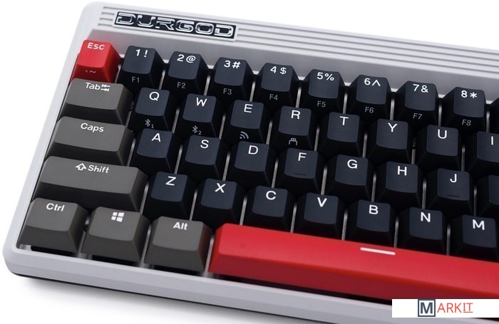 КЛАВИАТУРА БЕЗ КИРИЛЛИЦЫТип: линейныйСила нажатия: 45 грамм (средние)Длина пути: 3.7 мм (1.9 мм до срабатывания)Помимо подключения через стандартный кабель USB клавиатура может работать в одном из двух беспроводных режимов — Bluetooth 5.0 или беспроводном соединении 2.4G, обладающем меньшей, по сравнению с Bluetooth, задержкой. Переключение между режимами осуществляется с помощью специального слайдера в верхней правой части. Благодаря беспроводному подключению вы также можете подключить клавиатуру к устройствам на iOS или Android.Два кабеля в комплекте - Вы можете использовать как USB Type-C, так и старый добрый USB Type-A.Мультимедиа и дополнительные FN функции - Клавиатура поддерживает сочетания клавиш для регулировки громкости и управления музыкой. Также имеется возможность отключить кнопку Windows.Durgod Zeus Engine позволяет создавать макросы. Можно создать свои мультимедиа, функциональные макросы и многое другое. ПО не поддерживается на Mac OS.Прочные регулируемые ножки позволят немного приподнять клавиатуру и изменить её угол наклона для более комфортной печати, а их прорезиненное дно не даст клавиатуре сдвинуться с места.Функция Full N-key Rollover по USB (NKRO) - Позволяет нажимать одновременно неограниченное количество клавиш. Для печати идеально подойдет как 6KRO, так и NKRO, независимо от вашей скорости. Для игр NKRO будет плюсом и неважно, нажимаете ли вы больше 6 кнопок или нет, поскольку, играя в любую игру, вы можете случайно нажать пару лишних клавиш и из-за этого клавиатура может не среагировать на нажатие, которые вы хотели совершить изначально. Осторожно, старые BIOS-ы могут не реагировать на клавиатуру из-за NKRO.