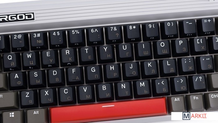 КЛАВИАТУРА БЕЗ КИРИЛЛИЦЫТип: линейныйСила нажатия: 45 грамм (средние)Длина пути: 3.4 мм (1.2 мм до срабатывания)Помимо подключения через стандартный кабель USB клавиатура может работать в одном из двух беспроводных режимов — Bluetooth 5.0 или беспроводном соединении 2.4G, обладающем меньшей, по сравнению с Bluetooth, задержкой. Переключение между режимами осуществляется с помощью специального слайдера в верхней правой части. Благодаря беспроводному подключению вы также можете подключить клавиатуру к устройствам на iOS или Android.Два кабеля в комплекте - Вы можете использовать как USB Type-C, так и старый добрый USB Type-A.Мультимедиа и дополнительные FN функции - Клавиатура поддерживает сочетания клавиш для регулировки громкости и управления музыкой. Также имеется возможность отключить кнопку Windows.Durgod Zeus Engine позволяет создавать макросы. Можно создать свои мультимедиа, функциональные макросы и многое другое. ПО не поддерживается на Mac OS.Прочные регулируемые ножки позволят немного приподнять клавиатуру и изменить её угол наклона для более комфортной печати, а их прорезиненное дно не даст клавиатуре сдвинуться с места.Функция Full N-key Rollover по USB (NKRO) - Позволяет нажимать одновременно неограниченное количество клавиш. Для печати идеально подойдет как 6KRO, так и NKRO, независимо от вашей скорости. Для игр NKRO будет плюсом и неважно, нажимаете ли вы больше 6 кнопок или нет, поскольку, играя в любую игру, вы можете случайно нажать пару лишних клавиш и из-за этого клавиатура может не среагировать на нажатие, которые вы хотели совершить изначально. Осторожно, старые BIOS-ы могут не реагировать на клавиатуру из-за NKRO.