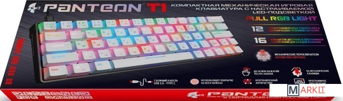 PANTEON T1 – механическая игровая клавиатура с LED-подсветкой FULL RGB LIGHT. Технология FULL RGB позволяет тонко настраивать подсветку и выбирать цвет свечения как для всего поля, так и для каждой клавиши в отдельности при помощи фирменного программного обеспечения.