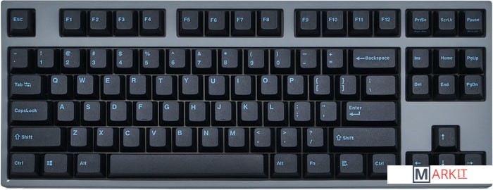 Тип: тактильный Сила нажатия: 55 грамм (средние)Длина пути: 4 мм (2 мм до срабатывания)Данная модель имеет темную цветовую схему, расцветка обязательно понравится фанатам классики. Клавиатура собрана добротно и монолитно, а сочетание высококачественных double-shot PBT клавиш с переключателями Cherry MX и звукопоглощающей подложкой позволяет сделать печать на клавиатуре максимально тихой (насколько это возможно для механики). Mini-USB порт спрятан в центре под корпусом, а на самой клавиатуре имеются центральная и две боковые канавки под кабель.Клавиатура поддерживает сочетание клавиш для регулировки громкости и управления музыкой, также имеется возможность переключения между 6KRO и NKRO.DIP-переключатели на задней панелиДают возможность поменять местами функции кнопок Ctrl и Caps Lock, Windows и Alt, Windows и Fn или отключить Windows.Звукопоглощающая подложкаПоглощает звуки при нажатии, делая процесс печати более тихим по сравнению с обычными механическими клавиатурами.Низкопрофильные клавиши Step-Sculpture2Данные клавиши заметно ниже и имеют оптимальный угол наклона, из-за чего, по отзывам, печатать приятнее и комфортнее, чем на более высоких клавишах.Клавиатура совместима с Mac OSFN-слой работает (кроме клавиш F6, F8, F9), а поменять местами клавиши-модификаторы можно в системных настройках. Проверено с MAC OS 10.13Функция Full N-key Rollover по USB (NKRO)Позволяет нажимать одновременно неограниченное количество клавиш. Для печати идеально подойдет как 6KRO, так и NKRO, независимо от вашей скорости. Для игр NKRO будет плюсом и неважно, нажимаете ли вы больше 6 кнопок или нет, поскольку, играя в любую игру, вы можете случайно нажать пару лишних клавиш и из-за этого клавиатура имеет шанс не среагировать на нажатие, которое вы хотели совершить изначально. Имеется возможность переключения между NKRO и 6KRO через FN сочетания.