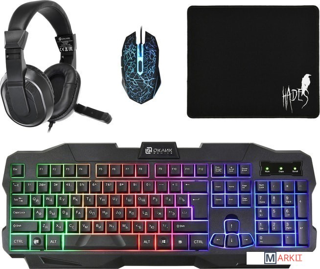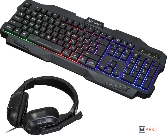клавиатура + мышь с ковриком + наушники |