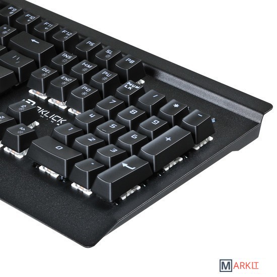 Anti-ghost с неограниченным количеством одновременных нажатий. Ресурс кнопок до 10000000 нажатий. Скорость передачи до 1000 Гц. 6-ти цветная подсветка клавиш. Механическая структура клавиш.