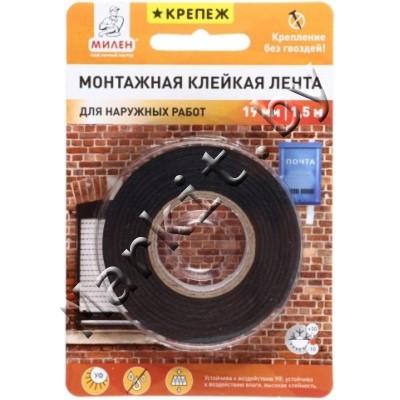Markit » Товары для упаковки и маркировки » Клейкие ленты » Клейкая лента монтажная Милен 19мм x 1,5м для наружных работ
