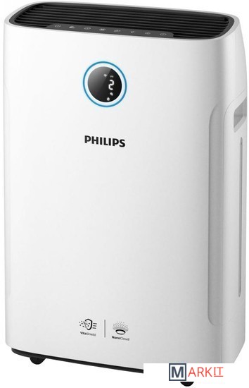 Воздухоочиститель Philips «2 в 1» очищает воздух в помещениях площадью до 30 м² и быстро увлажняет его со скоростью 600 мл/ч. Возможность управления через приложение и встроенные датчики, которые помогают воздухоочистителю сканировать состояние воздуха и автоматически подстраивать уровень увлажнения, одновременно очищая воздух от аллергенов и загрязняющих веществ.