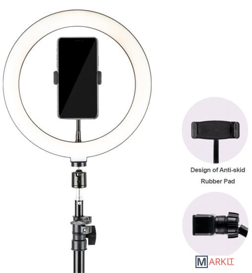 HAVIT ST7012I для прямой трансляции со светодиодной кольцевой подсветкой обеспечит Вам равномерный свет для портретной или предметной съемки, а также послужит незаменимым осветительным прибором для визажистов, блоггеров и людей, занимающихся творчеством.Длина кронштейна составляет 72-210 см, со стабильной конструкцией штатива, который можно регулировать по высоте. Гибкие поворотные адаптеры, подойдут для просмотра мобильного телефона в разных направлениях. Зажимы изготовлены из эластичного силикона, чтобы оборудование было безопасным, устойчивым и не падало. Кронштейн имеет спиральную конструкцию зажима, которую можно зафиксировать всего за один оборот, что очень удобно. Три режима свечения теплый, холодный, и дневной. Легкое вращение 360 градусов. 120 бусин в лампе.