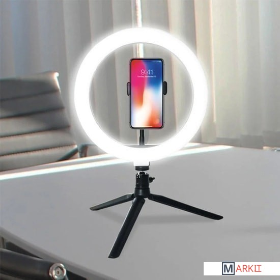 Кольцевой профессиональный осветитель Ring Light HQ-18 разработан как инструмент фотографа для бьюти фотографий, для получения правильной и красивой заливки лица при съемке, а также получения необычных бликов в глазах модели в виде кольца. Легкая и удобная кольцевая лампа, со специальной сумкой в комплекте, идеально подходит для повседневного использования, эта модель особо пригодится тем, кто работает на выезде. Плавная регулировка яркости (диммер) позволит настроить необходимый уровень освещения. Регулировка цветовой температуры создаст нужный оттенок в вашей работе или зоне нахождения. Матовый рассеиватель светового потока делает явные границы переходов мягкими и незаметными. Данные качества являются немаловажными, поскольку многим фотографам необходим строго определенный цвет для создания того или иного фотоснимка. В комплектацию данной модели входят несколько элементов, которые станут неотъемлемыми для каждого высококвалифицированного специалиста.