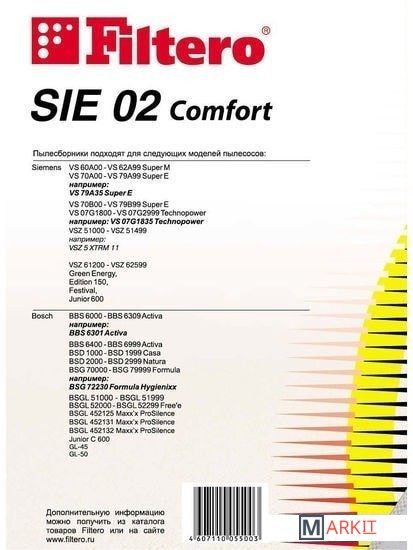 Markit » Аксессуары для пылесосов, пароочистителей » Комплект одноразовых мешков Filtero SIE 02 Comfort