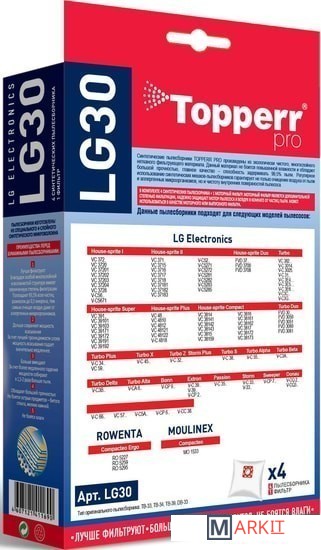 Markit » Аксессуары для пылесосов, пароочистителей » Комплект одноразовых мешков Topperr LG30