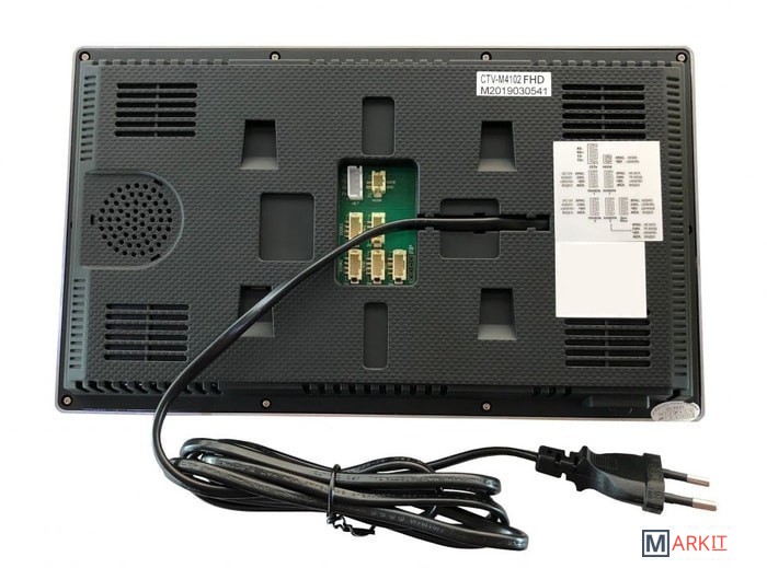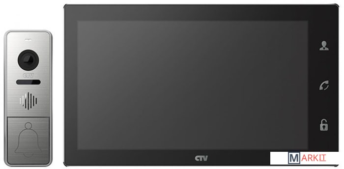 Комплект домофона с экраном 10" с поддержкой разрешения Full HD, Touch Screen, встроенным регистратором, сенсорным управлением, поддержкой облачного сервиса P2P. Цветной видеодомофон CTV-DP4102FHD(Черный), состоящий из цветного монитора CTV-M4102FHD(Черный) и цветной вызывной панели CTV-D4000FHD, работающих в формате видео AHD(1080P), предназначен для организации контроля доступа и двусторонней аудио-видео связи с посетителем. К монитору можно подключить одну или две вызывные панели, одну или две дополнительные внешние камеры, один или два датчика тревоги, а также до 3 дополнительных домофонных мониторов марки CTV, поддерживающих работу в дополнительном режиме.