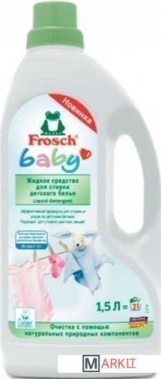 Жидкое средство для стирки детского белья FROSCH Baby используется для стирки детских вещей с первых дней жизни ребенка, а также для стирки одежды людей с чувствительной кожей. Благодаря формуле с натуральными экстрактами ромашки, жидкое средство эффективно отстирывает самые стойкие пятна уже при температуре 30°С, подходит для цветного и белого белья. Средство гипоаллергенно, не содержит красителей и дополнительных консервантов. Протестировано дерматологами. Подходит для всех типов ткани, кроме шерсти и шелка. Состав: 5-15% неионогенные ПАВ, мыло, < 5 % анионные ПАВ, энзимы (протеаза, амилаза, целлюлаза), ароматизирующие добавки, экстракт ромашки.