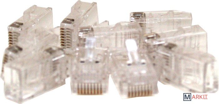 Разъём RJ-45 Electraline для витой пары, оснащённость - 8-контактный, 10 коннекторов в упаковке.
