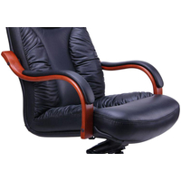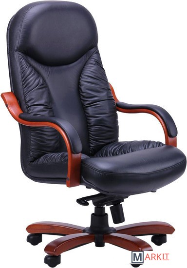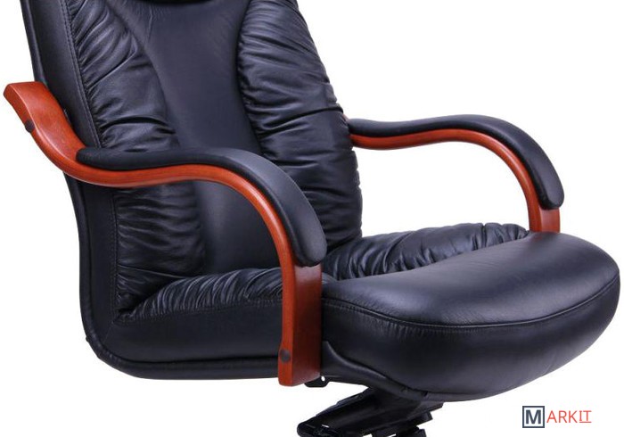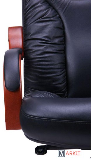 Кресло изготовлено из двух видов материалов. Задняя часть сделана из искусственной кожи повышенной износостойкости, которая по внешним признакам почти неотличима от натуральной кожи.Рабочая поверхность кресла обтянута натуральной кожей Люкс самого высокого качества выделки. Материал изготовлен по особым технологиям, которые повышают эстетические и потребительские характеристики кожи. Разнообразие расцветок позволит подобрать мебель к любому интерьеру.