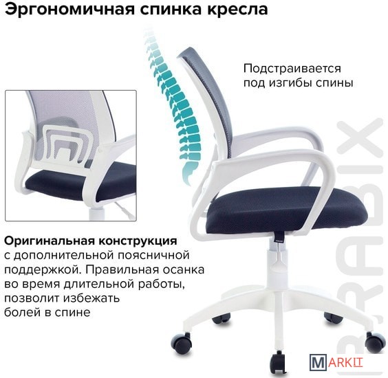 BRABIX "Fly MG-396" - доступное, качественное кресло с эргономичной сетчатой спинкой. Прекрасный вариант для повседневной работы в офисе и дома.Спинка выполнена из прочного материала - акриловой сетки и имеет выраженную поясничную поддержку, обеспечивающую комфортную посадку в течение всего рабочего дня.Ткань TW обладает высокой воздухопроницаемостью и прочностью, практически не истирается.Наполнитель сиденья - утолщенный поролон средней жесткости.