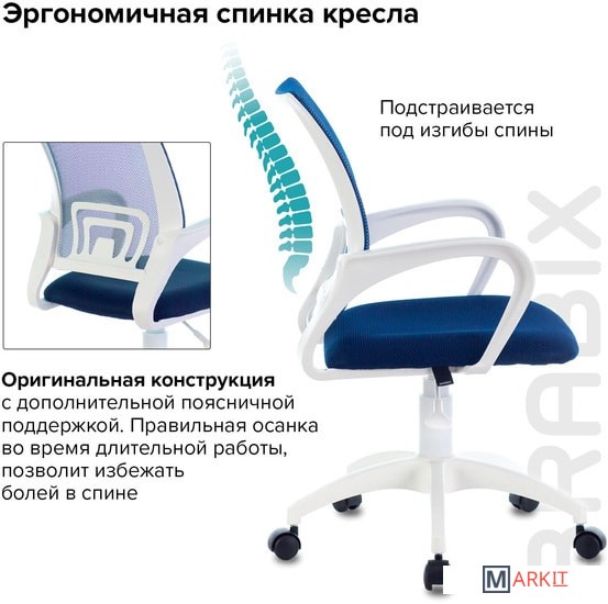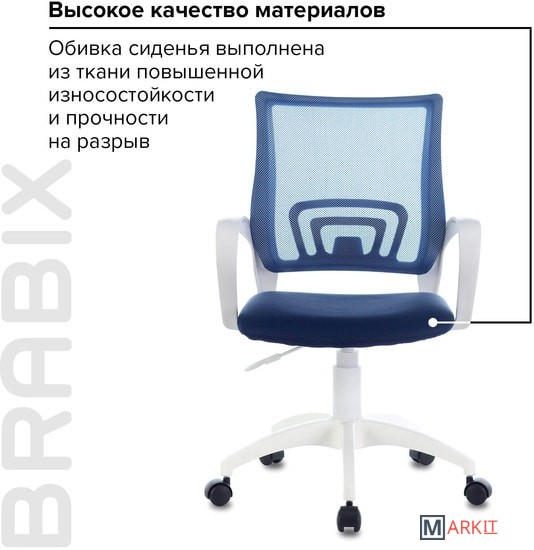 BRABIX "Fly MG-396" - доступное, качественное кресло с эргономичной сетчатой спинкой. Прекрасный вариант для повседневной работы в офисе и дома.Спинка выполнена из прочного материала - акриловой сетки и имеет выраженную поясничную поддержку, обеспечивающую комфортную посадку в течение всего рабочего дня.Ткань TW обладает высокой воздухопроницаемостью и прочностью, практически не истирается.Наполнитель сиденья - утолщенный поролон средней жесткости.