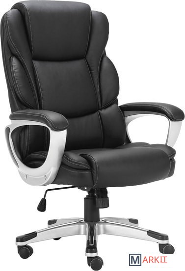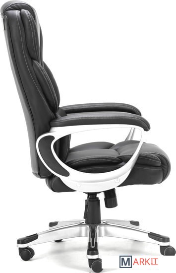 Высокая спинка с широким мягким подголовником и боковой поддержкой выводят эргономику кресла на новый уровень.Обивка выполнена из экокожи высокого качества - современного материала на хлопковой основе. Благодаря тканой основе и пористому полиуретану экокожа отлично пропускает воздух, что положительным образом сказывается на комфорте во время эксплуатации. Материал износоустойчив - кресло сохранит привлекательный внешний вид в течение длительного времени.Наличие перфорации в центральной части кресла обеспечивает дополнительную циркуляцию воздуха.Помимо плотной набивки в сиденье кресла встроен пружинный блок - конструкция из стальных независимых пружин, предназначенная для лучшей амортизации. Благодаря пружинным блокам мебель «не проседает» в процессе эксплуатации, комфортна и функциональна. Также в набивке использован поролон высокой плотности - это обеспечивает оптимальную поддержку пользователя и препятствует "проминанию" сиденья в ходе эксплуатации.Прочные пластиковые подлокотники имеют мягкие накладки.Надежный механизм качания "Top Gun" обеспечивает хорошую поддержку спины и поясницы за счет возможности свободного качания с фиксацией в одном рабочем положении и регулировку угла наклона под вес сидящего.