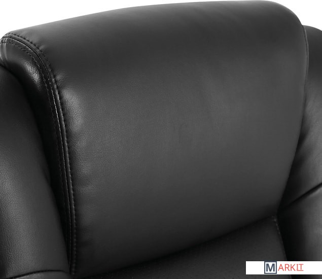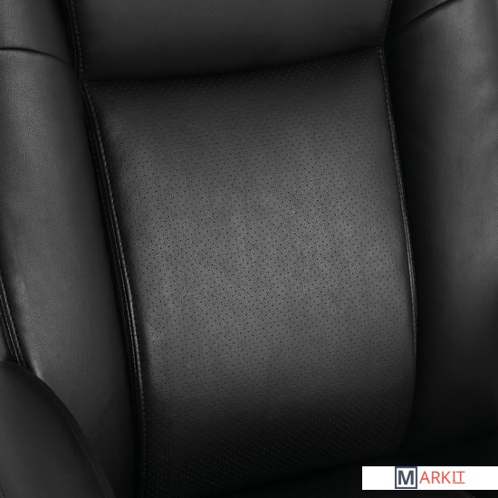 Удобное, практичное кресло классического дизайна с высокой спинкой. Просторные габариты сиденья и плотная набивка обеспечивают комфортную посадку.Обивка кресла выполнена из высокотехнологичного, современного материала - рециклированной кожи. По эластичности и прочности рециклированная кожа максимально близка к натуральной. Этот материал устойчив к истиранию, что позволит сохранить внешний вид кресла на протяжении всего срока эксплуатации.Наличие перфорации в центральной части кресла обеспечивает дополнительную циркуляцию воздуха.Высокая спинка с широким мягким подголовником и боковой поддержкой сиденья выводят эргономику данной модели на новый уровень.Подлокотники из высокопрочного пластика с мягкими накладками формируют дополнительный комфорт.Надежный механизм качания "Top Gun" обеспечивает хорошую поддержку спины и поясницы за счет возможности свободного качания с фиксацией в одном рабочем положении и регулировку угла наклона под вес сидящего.Прочные пластиковые подлокотники имеют мягкие накладки.