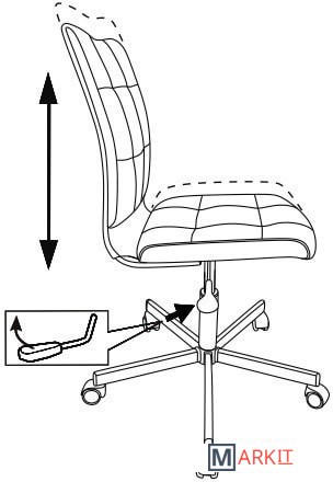 Колеса оснащены тормозом безопасности, реагирующим на изменение давления: стул не откатывается, когда вы садитесь или встаете.