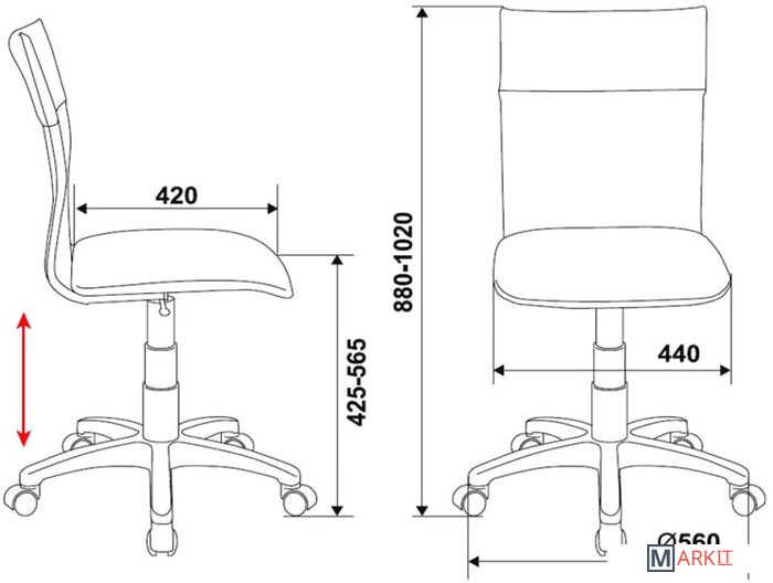 | Высота опоры | 42.5 — 56.5 см |