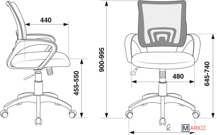 Высота спинки 44.5 см