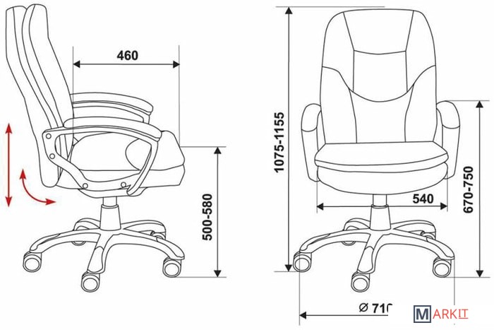 | Регулируемый наклон спинки | ✘ |