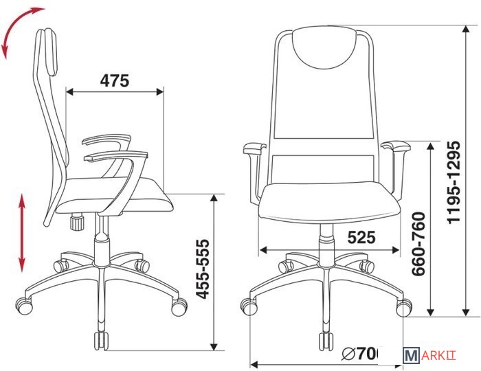 | Регулируемый наклон спинки | ✘ |