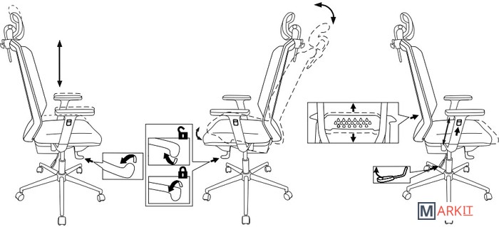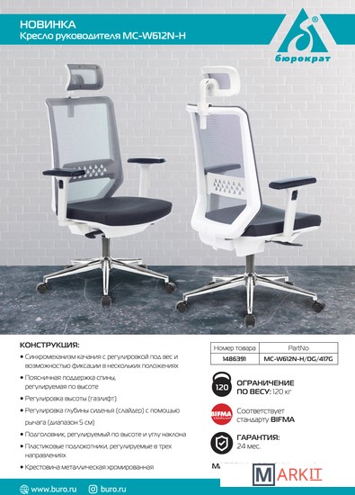 Синхромеханизм качания с регулировкой под вес и возможностью фиксации в нескольких положениях_x000D_Регулировка глубины сиденья(слайдер)с помощью рычага (диапазон 5 см)_x000D_Подголовник, регулируемый по высоте и углу наклона_x000D_Поясничная поддержка спины с регулировкой по высоте_x000D_Подлокотники 3D_x000D_Регулировка высоты (газлифт)_x000D_Крестовина металлическая хромированная_x000D_Колеса для паркета и ламината_x000D_Ограничение по весу: 120 кг_x000D_Соответствует стандарту BIFMA_x000D_Гарантия: 24 мес.