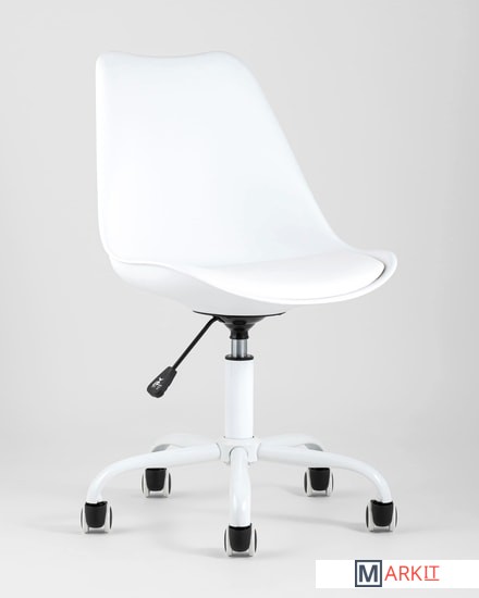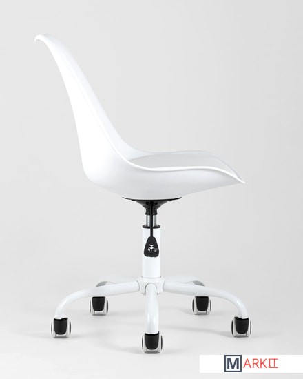 Дизайнерский офисный стул на металлической крестовине. Сиденье выполнено из экокожи, устойчивой к повреждениям. Каркас сиденья плавно перетекает в аккуратную спинку - они выполнены из высококачественного пластика.