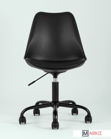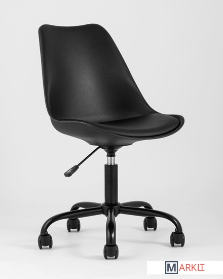 Дизайнерский офисный стул на металлической крестовине. Сиденье выполнено из экокожи, устойчивой к повреждениям. Каркас сиденья плавно перетекает в аккуратную спинку - они выполнены из высококачественного пластика.