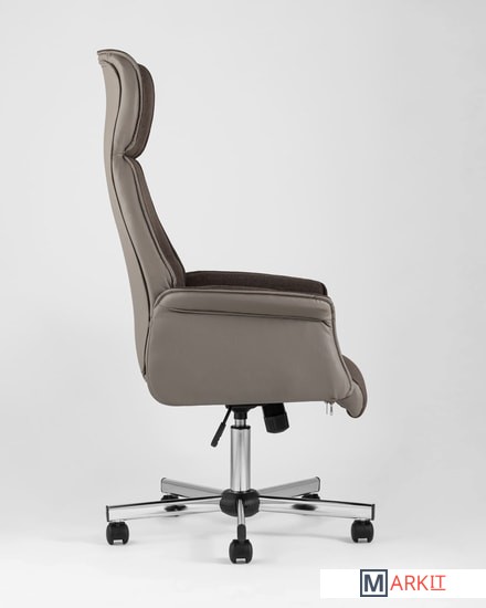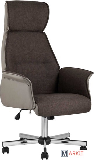 Современное и функциональное кресло для руководителя.Обивка выполнена из качественной экокожи в сочетании с практичной тканью. Комфорта добавляют удобные подлокотники, а благодаря механизму регулировки высоты и качания можно выбрать наиболее удобное положение.Высокая спинка оказывает качественную поддержку и позволяет провести в кресле долгое время без усталости. Каркас изготовлен из металла и выдерживает нагрузку до 120 кг.