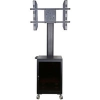 Мобильная стойка MediaPRO 1100 для дисплея с диагональю 30-60", максимальным весом 60 кг иVESA 800x400 максимум. Стойки имеет металлическую тумбу (размер, ГхШхВ: 500 х 500 х 700 мм), куда можно установить различное оборудование. Тумба закрывается на ключ, что бы ограничить доступ и обеспечить сохранность установленных устройств. Блок розеток внутри тумбы и на профиле обеспечивают удобное и быстрое подключение устройств. Кабель канал организует провода, что бы они не мешали в процессе эксплуатации или перемещения тележки. Дополнительно можно добавить такие опции как полки для видеокамеры, кодека и т.п. Каждая полка может нести нагрузку до 20кг, а тумба до 30 кг.
