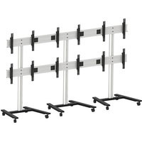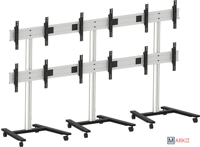 Мобильная стойка для видеостены 3 х 2 для 6 панелей (3 в ширину, 2 в высоту) с диагональю 30-55" и весом до 40 кг каждый. Крепления поддерживают VESA 800x400 и могут регулироваться по высоте на 15 мм и в глубину на 15 мм. Такая точная донастройка позволяет точно собрать видеостену, что бы избежать пропусков, зазоров между экранами и получить целостное изображение.