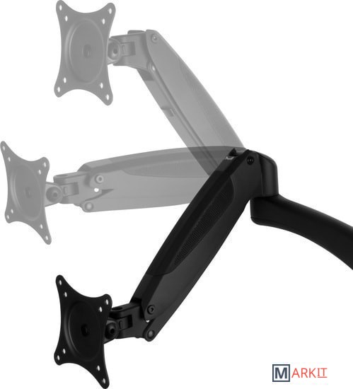 | Функциональные особенности | поворотный, с регулировкой высоты, кабель-канал, струбцинное крепление, для 2 мониторов |