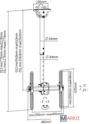 | Расстояние от стены (потолка) | 560 — 910 мм |