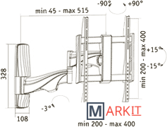 | Угол поворота (без ТВ) | 180 ° |