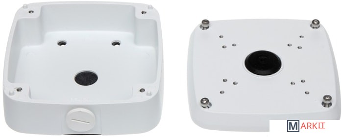 Монтажная коробка для установки купольных (HAC-HDW) и цилиндрических (HAC-HFW, IPC-HFW) камер.Размеры: 134х134х55 ммСтепень защиты: IP66