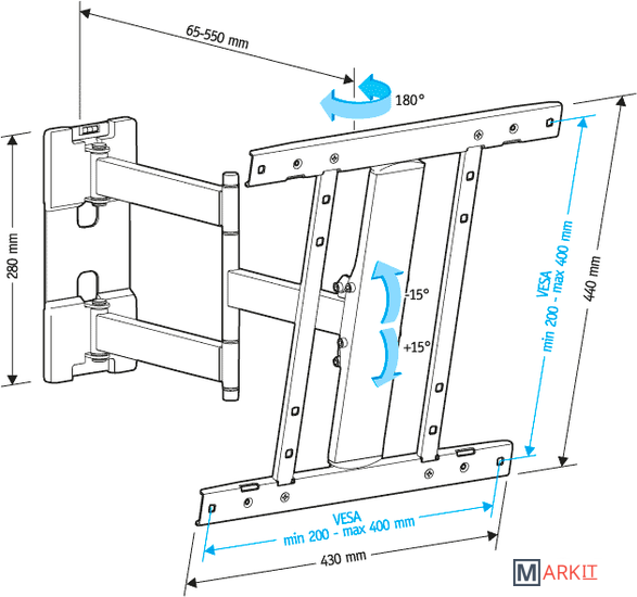 | Угол поворота (без ТВ) | 180 ° (120 °) |