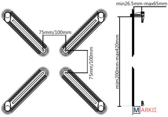 C помощью переходника iTECHmount ADPU-1 можно установить монитор с диагональю до 27", в корпусе которого нет монтажных отверстий для крепления, на кронштейн стандарта VESA 75x75 и 100x100 мм. Все необходимые винты включены в комплект. Переходник iTECHmount ADPU-1 существенно расширяет возможности различных моделей кронштейнов, делая их совместимыми с большинством современных мониторов, не имеющих креплений стандарта VESA.