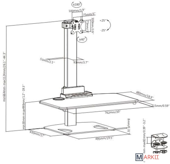 | Расстояние от стены (потолка) | 30 — 490 мм |