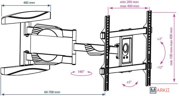 | Расстояние от стены (потолка) | 60 — 700 мм |