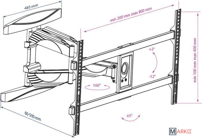 | Расстояние от стены (потолка) | 60 — 500 мм |