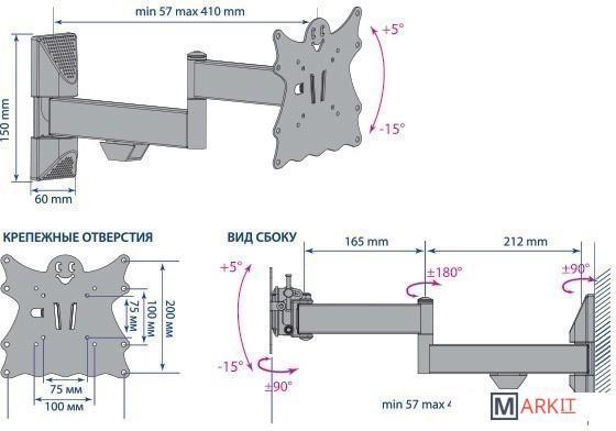 | Расстояние от стены (потолка) | 57 — 410 мм |