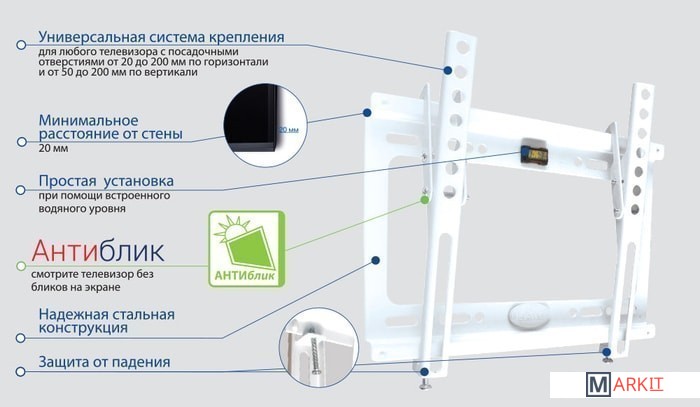 | Совместимая диагональ экрана | 15 — 47 " |