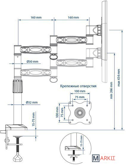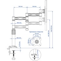 | Функциональные особенности | поворотный, с регулировкой высоты, кабель-канал, струбцинное крепление |